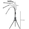 - SPECYFIKACJA – timer: 4, 8, i 12h; liczba diod: 80; zasilanie: sieciowe + USB; wodoodporność: IP 54; elastyczne ramiona: tak; emitują kolor: czerwony i niebieski; typ diody LED GROW: czerwona – 660nm, niebieska – 460 nm; 4 panele świetlne; kąt nachylenia do 360 stopni; regulacja natężenia oświetlenia: tak, 10 stopniowa; maksymalna moc 1 lampy: 3,5 W; maksymalna moc 4 lamp: 14 W; funkcja pamięci: tak; długość kabla: 180 cm; długość żarówki: 14 cm; długość ramienia giętkiego: 39 cm; regulacja stojaka: 73-153 cm; rozstaw nóg: 32-74cm; maksymalne wymiary: 195 x 120 cm; waga 1,127 g; waga z opakowaniem: 1,597 g.