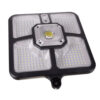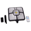 - SPECYFIKACJA: kolor: czarny; barwa światła: zimny biały; materiał: ABS, pozostałe: PC + PP + polisilikon; lampa zbudowana: z 4 segmentów po 55 diod SMD razem 220 diod; soczewka z 15 COB; wodoodporność: IP65; zasięg czujki ruchu: 5 m; akumulator: 2 x 1200mah; czas pracy: wiosna lato: 6-8 h; zima: 8-10 h; napięcie: 5,5V; moc: 8W; kąt świecenia: 120 °; wymiary: 36,5 x 23 x 4,5 cm; waga: 0,633 kg; waga w opakowaniu: 0,813 kg.