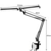 - SPECYFIKACJA – kolor: czarny; ilość LED: 168; materiał: aluminium, plastik; ilość poziomów świecenia: 10; ilość barw światła: 3; regulacja: 360 / 220 / 270 stopni; wtyczka: sieciowa; moc: 24W; napięcie: 12V; temperatura barwowa: 3200-6000k; żywotność żarówki: 50000h;maksymalna grubość blatu do uchwytu: 55mm; długość kabla: 227 cm; długość panela święcącego: 32,5cm; całkowita długość paneli świecących: 73,5 cm; wymiar ramienia: 40 cm; wymiar ramienia z uchwytem: 47 cm; waga: 0,853 kg; waga w opakowaniu: 1,196 kg.