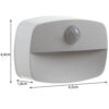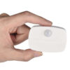 - SPECYFIKACJA – kolor: biały; materiał: ABS, pozostałe: PP + żelazo; czujnik ruchu PIR: tak; zasilanie na baterie: 3 x AAA (brak w zestawie); wymiary: 4,4 x 6,5 x 1,8 cm; waga: 0,023 kg; waga w opakowaniu: 0,037 kg.