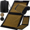 - SPECYFIKACJA – kolor: czarno – złoty; materiał: bawełna, len, HIPS, gąbka ABS, tkanina oxford 210D, PP; liczba kolców na rozetce: 27; liczba rozetek na macie: 414; liczba punktów ucisku na macie: 11178; liczba rozetek na poduszce: 95; liczba punktów ucisku na poduszce: 2565; ilość kolców na piłce: 122; wymiary maty: 115 x 40 x 2 cm; wymiary poduszki: 30 x 30 x 11 cm; średnica piłki: 6,5 cm; waga zestawu: 1,2 kg; waga w opakowaniu: 1,5 kg.