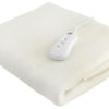 ? SPECYFIKACJA – moc: 65W; materiał: poliester; zasilanie: 220-240V, 50-60Hz; ilość stopni grzania: 3; wymiary: 190/80 cm; długość przewodu: ~150 cm; waga koca: 1 kg; waga z opakowaniem: 1,4 kg.