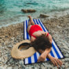 - GRUBA – prezentowana mata posiada aż 1 centymetr grubości, dzięki czemu ochroni Cię przed niewygodnym, twardym żwirem lub kamieniami. Pozwoli Ci na relaks niezależnie od rodzaju plaży na jakiej przebywasz.