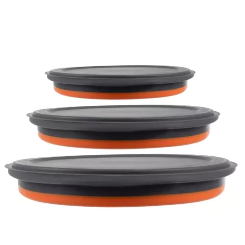• SPECYFIKACJA – kolor: szaro-pomarańczowy; materiał: silikon / tworzywo sztuczne; temperatura użytkowania od -10? do 80?; pojemność w litrach: mały: 0,4 l, średni: 0,85 l, duży: 1,65 l; wymiary: rozłożony mały: 12 x 6,5 cm; złożony: 12 x 2,5 cm, rozłożony średni: 15 x 7,5; złożony 15 x 3,5 cm, rozłożony duży: 19 x 8,5 cm; złożony 19 x 3,7 cm; waga: 306 g; waga w opakowaniu: 308 g.