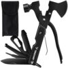 • 17 w 1 – produkt posiada aż 17 wbudowanych różnych narzędzi, dzięki którym można poradzić sobie podczas survivalu, wędkowania, wędrówek, na biwaku, kempingu, pod namiotami, w pracy czy po prostu podczas prac ogrodowych. Multitool ma w zestawie: siekierkę, szczypce zaciskowe, pilnik, skrobak do ryb, śrubokręt płaski, klucz sześciokątny, harpun, otwieracz do butelek, piła do drewna, śrubokręt krzyżakowy, scyzoryk, młotek, przecinak drutów, obcęgi, szczypce, odbojnik i blokadę.