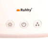 - ZMENNOŚĆ KOLORÓW I NOWOCZESNE OŚWIETLENIE – nawilżacz wyposażony jest w 6 diod LED, które zmieniają kolor, oferując aż 8 trybów zmiany kolorów. Za pomocą przycisku oznaczonego symbolem słoneczka, użytkownik może wybierać pomiędzy automatyczną zmianą kolorów lub ustawić jeden z siedmiu dostępnych kolorów: biały, czerwony, żółty, zielony, niebieski, fioletowy i różowy. Funkcja ta pozwala na stworzenie odpowiedniej atmosfery w pomieszczeniu, niezależnie od pory dnia czy nastroju. Nawilżacz może również pełnić funkcję samej lampki nocnej, tworząc przytulne oświetlenie, bez potrzeby korzystania z funkcji nawilżania.