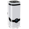 • SPECYFIKACJA – kolor: biały; materiał: PP, pozostałe: ABS + pilot materiał: PP, pozostałe: PET; moc: 28W; zasięg: 20m2; pojemność zbiornika: 4l; wydajność: 250ml/h; jonizator: TAK; higrostat: TAK; timer: TAK; panel dotykowy: TAK; pilot w zestawie: TAK; tryb nocny: TAK; zmiana natężenia pary: TAK; tryb stałej wilgotności: TAK; olejki w zestawie: 3; przewód zasilający: 129 cm; wymiary: 14/14/37 cm; waga: 0,950 kg; waga w opakowaniu: 1,263kg.
