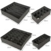 • SPECYFIKACJA – kolor: szary; materiał: włóknina, boki usztywnione tekturą, pozostałe: nylon + stop cynku; usztywniane: ścianki; składany: tak; wymiary: organizer na 24 przegródki: 33 x 33 x 10 cm; organizer na 8 przegródek: 28 x 14 x 10 cm; organizer na 7 przegródek: 33 x 33 x 10 cm organizer na 6 przegródek: 33 x 14 x 10 cm; waga: 534 g; waga w opakowaniu: 539 g.