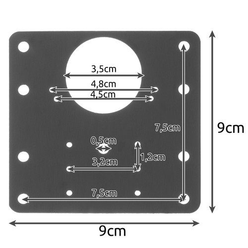 - SPECYFIKACJA – materiał: stal nierdzewna; wkręty: żelazo pokryte powłoką niklową; ilość otworów: 20; uniwersalny: tak; prawy/lewy: tak; długość śrub: 1,5cm; grubość płytki: 1mm; wymiar: 9 x 9 cm; waga: 129 g; waga w opakowaniu: 165 g.
