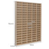 - SPECYFIKACJA – kolor: sosna; materiał: drewniana sklejka; ilość przegródek: 90; wielkość przegródki: 5 x 9,3 x 5 cm; wymiary: 78,5 x 50 x 5,3 cm; waga: 2,75 kg; waga w opakowaniu: 3,2 kg.