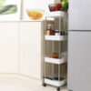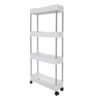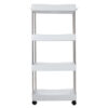 - SPECYFIKACJA PÓŁKI kolor: biały; materiał: PP, stal nierdzewna; materiał kółek: PP; ilość poziomów: 4; na kółkach: tak; łatwy montaż: tak; wysokość od podstawy dolnej półki do górnej: 26 cm; wymiary: 91,5 x 37 x 12cm; waga: 0,78 kg; waga w opakowaniu: 0,98 kg