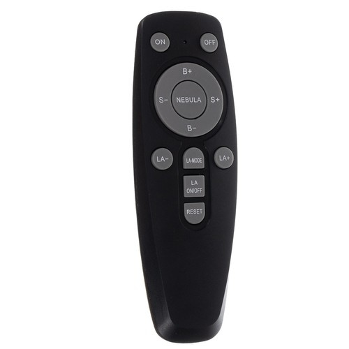 - STEROWANIE – projektor wyposażony jest w pilota oraz przyciski na ciele astronauty, które umożliwiają włączanie i wyłączanie, a także zmianę ustawień: zmiana kolorów; włączanie i wyłączania mgławicy czy gwiazd; ustawienia czasowe (automatyczne rozjaśnianie i wyciemnianie gwiazd w określonym czasie).