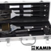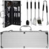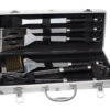 Wysokiej jakości akcesoria do grillowania ułatwiają i uprzyjemniają pracę przy rozgrzanym grillu i przygotowywaniu grillowanych dań. Zestaw przyborów do grilla obejmuje aż 5 przydatnych elementów widelec, łopatkę, pędzel i szczypce oraz szczotkę do czyszczenia grilla. Całość zamknięta jest w mocnym etui. Takie przybory do grilla można ponadto z powodzeniem wykorzystać również w kuchni – np. do pieczenia.