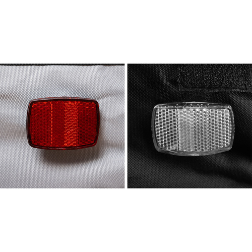 bezpieczna konstrukcja – przyczepka spacerowa i joggingowa posiada 4-punktowe pasy bezpieczeństwa, hamulec postojowy, flagę ostrzegawczą oraz elementy odblaskowe, które zwiększają widoczność i bezpieczeństwo Twojego dziecka