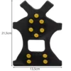 - SPECYFIKACJA – kolor: czarno/żółto/srebrny; materiał: TPE/metal; ilość zębów w 1 raku: 10; rozmiar: L 40-44; grubość gumy: 0,3 cm; wysokość kolca: 3,5 mm; wymiary na płasko: 21,5 x 13,5 cm; waga: 130 g; waga z opakowaniem: 135 g.