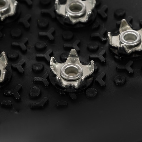 - SPECYFIKACJA – kolor: czarno / srebrne; materiał: TPE / metal; ilość zębów w 1 raku: 10; ilość kolców w 1 raku: 50; rozmiar: XL 44-47; grubość gumy: 0,3 cm; wysokość kolca: 3,5 mm; wymiary na płasko: 24 x 14,5 cm; waga: 0,215 kg; waga z opakowaniem: 0,238 kg.