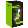 - ZESTAW 12 RZUTEK – jest to kompletny zestaw do gry w Darta. Całość jest wyposażona w 12 rzutek z piórkami w 4 kolorach oraz 200 miękkich grotów do wymiany.