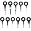 • WIELE ELEMENTÓW W ZESTAWIE – w zestawie ściągaczy do tapicerki znajduje się wiele elementów – oprócz 12 ściągaczy do tapicerki są tutaj również szczypce do spinek, 2 łapki do spinek (22,5 i 31 cm), a także 8 wyjmaków do radia, 11 kluczy do pinów, futerał na zamek i 4 haki do ściągania uszczelek.
