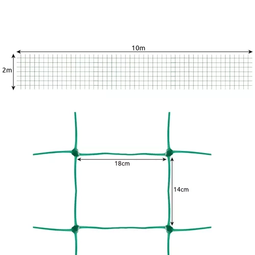 - SPECYFIKACJA – producent: Iso Trade; marka: Gardlov; kolor: zielony; materiał: PP; wymiary oczka: 14 x 18 cm; wymiary całkowite: 2 x 10 m; waga: 0,173 kg; waga w opakowaniu: 0,186 kg.