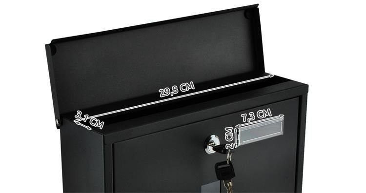 - ZASŁONIĘTY WRZUT NA LISTY / FORMAT A4 – skrzynka posiada wrzut który jest zabezpieczony specjalną nakładką chroniącą korespondencję przed warunkami atmosferycznymi. Do skrzynki z powodzeniem mieszczą się nawet listy o formacie A4.