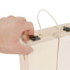 - BEZPIECZNA – dzięki temu, że skrzynka oraz akcesoria wykonane zostały z drewna, są bezpieczne dla każdego dziecka. Naturalny surowiec powoduje, że nawet jeżeli dziecko weźmie zabawkę do buzi nie będzie miało styczności ze sztucznymi tworzywami.
