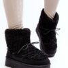 Damskie śniegowce na masywnej platformie z gumowego tworzywa. Środek ocieplony grubym futerkiem. Cholewka z wiązaniem i syntetycznym kożuszkiem. Idealne na mroźne zimowe dni! Koniecznie musisz je mieć!