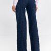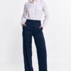 Spodnie bootcut z krytym guzikiem prążek SD103 Navy – Nife