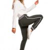 Modnie i wygodnie w spodniach typu jogger z mankietami z dwukolorowego ściągacza i lampasami w nogawkach nie przejdziesz niezauważona.
