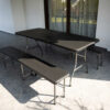 ?? SPECYFIKACJA – rama: stal malowana proszkowo; materiał: ławka/blat – HDPE, konstrukcja – stal, pozostałe – PVC + PE + ABS; kolor: czarny; wymiary stołu (dł/szer/wys): 180x74x74cm; złożony (dł/szer/wys): 90x74x9cm; wymiary ławki (dł/szer/wys): 180x30x45cm, złożona (dł/szer/wys): 90x30x9cm; waga zestawu z opakowaniem: 28,2kg.