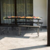 Ogrodowy zestaw cateringowy to idealny wybór dla osób, które cenią sobie prostotę i funkcjonalność. Doskonale sprawdzi się podczas imprez plenerowych, na salach bankietowych, w lokalach gastronomicznych czy do użytku domowego. Meble posiadają stalową konstrukcję pomalowaną metodą proszkową oraz niezwykle mocne i grube blaty z tworzywa, który sprawia, że są one odporne na trudne warunki atmosferyczne. Przy stole może usiąść nawet do 6 osób. Po złożeniu meble są wygodne w transportowaniu i przechowywaniu. Zmieszczą się w samochodzie oraz nie zajmą dużo miejsca w garażu czy na strychu.