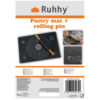 - SPECYFIKACJA – materiał: silikon + wałek materiał: drewno, pozostałe: PP + silikon; uchwyty wałka: drewno; posiada podziałki: tak; odporna na temperaturę: tak; łatwa w czyszczeniu: tak; elastyczna: tak; możliwość używania w piekarniku: max temp. 260stC; możliwość używania w zamrażarce: -60stC; możliwość mycia w zmywarce: tak; wymiary wałka: 38 x 5 cm; wymiary stolnicy: 70 x 50 cm; waga: 0,504 kg; waga w opakowaniu: 0,540 kg.