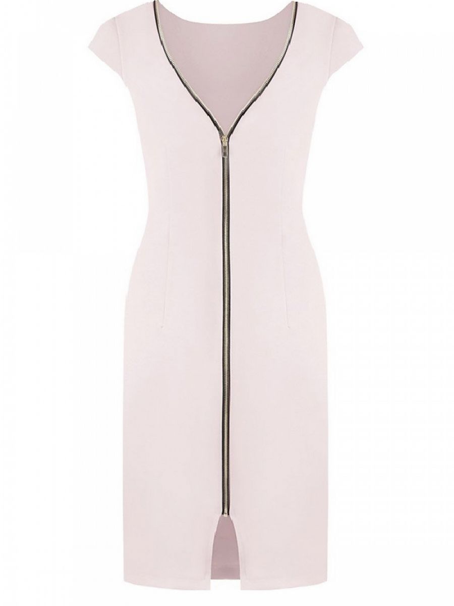 Sukienka uszyta z miękkiej dzianiny. Prosta i klasyczna jednak z pazurem. Na plecach na całej długości elegancki zamek w kolorze złotym powoduje, ze model jest niepowtarzalny. Delikatne zaszewki maskują niedoskonałości figury jednocześnie ja podkreślając.