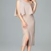 Sukienka 7/8 ze zmysłowym rozcięciem na prawym udzie. Góra sukienki na jedno ramię z wiązaniem na kokardę, zapinana na zamek. Model koktajlowy na wiele okazji.