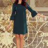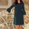 Sukienka Margaret z rozkloszowanym rękawkiem i koronkową wstawką – bardzo wygodna i niekrępująca ruchów – ciemno zielona. Marka numoco. Produkcja Polska.