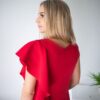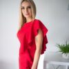 Sukienka w kolorze czerwonym o dopasowanym kroju. Sukienka zapinana na kryty zamek. Sukienka ozdobiona falbanką na całej długości. Sukienka wykonana z połyskującego złotem materiału.