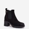 Botki damskie wykonane z eko zamszu. Osadzone na obcasie w formie słupka, który zapewnia stabilność i komfort przez cały dzień. Ocieplane, gwarantują ciepło w chłodniejsze dni, a zamek błyskawiczny ułatwia zakładanie. Z boku cholewki znajduje się subtelny, złoty detal, który dodaje im eleganckiego akcentu. Idealne do codziennych stylizacji, które wymagają zarówno wygody, jak i modnego wyglądu.