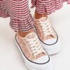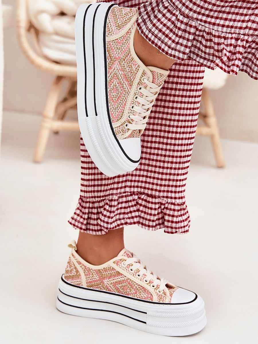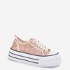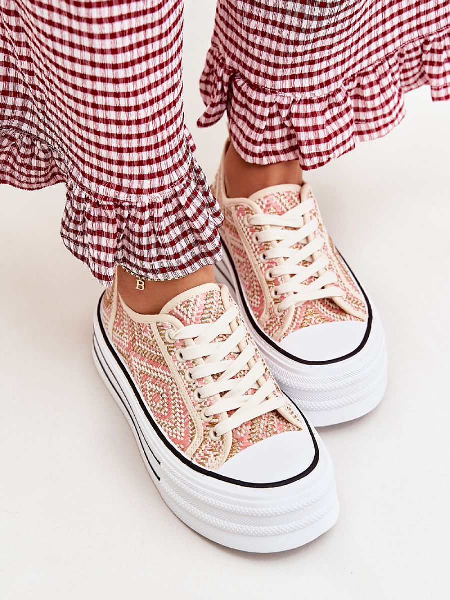 Trampki damskie na masywnej platformie z gumowego tworzywa to modny i wygodny wybór na co dzień. Niskie, klasycznie sznurowane, zapewniają komfort i doskonałe dopasowanie. Szerokie, zaokrąglone noski dają dodatkową przestronność, a miękka wkładka gwarantuje wygodę przez cały dzień. Idealne do codziennych stylizacji, łączą funkcjonalność z nowoczesnym wyglądem.