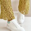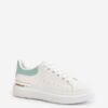 Niskie trampki damskie wykonane z eko skóry to stylowy wybór na co dzień. Osadzone na platformie z lustrzanym elementem, dodają odrobinę blasku i nowoczesności do każdej stylizacji. Idealne do noszenia zarówno z jeansami, jak i bardziej eleganckimi stylizacjami.
