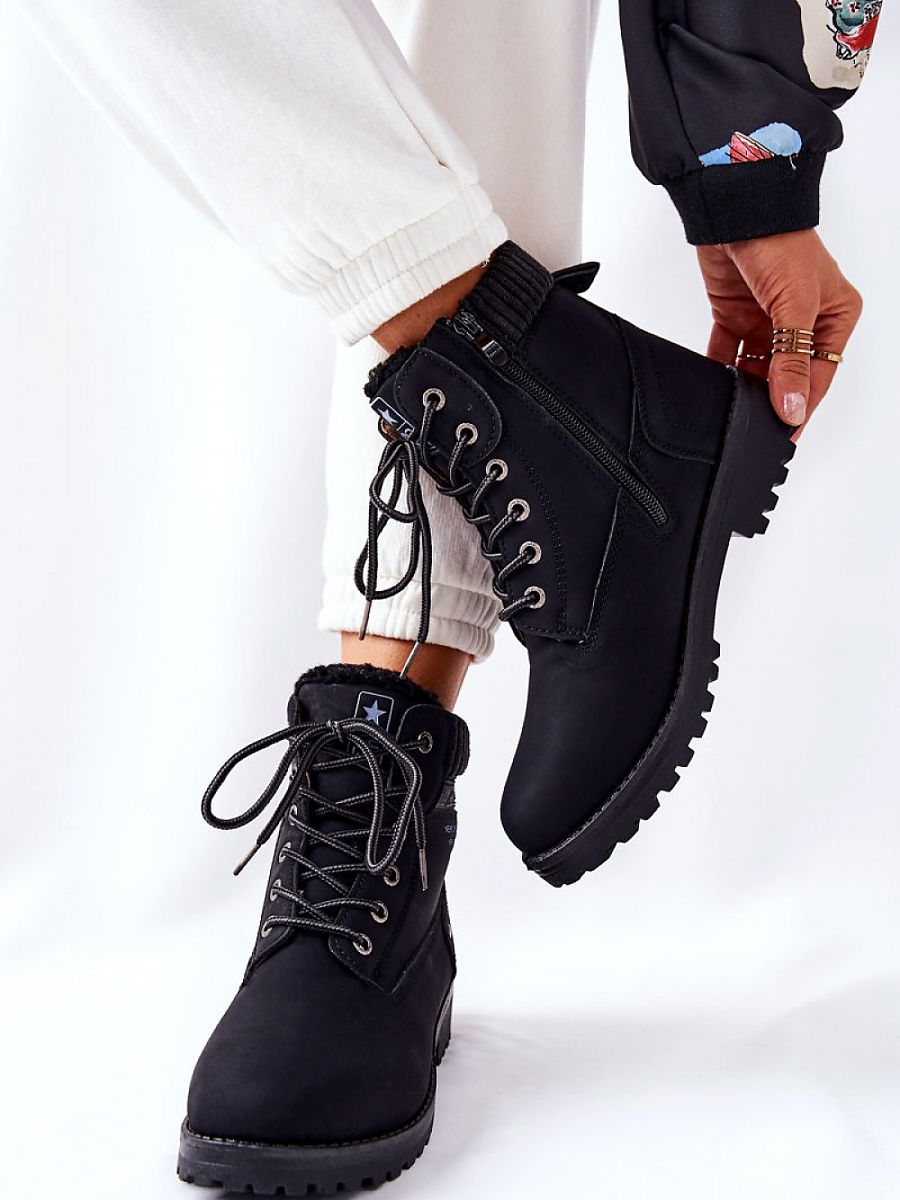 Trapery już na pierwszy rzut oka prezentują się świetnie, szczególnie w przypadku stylizacji na chłodniejsze dni. Zewnętrzna część buta została wykonana z ze skóry ekologicznej. Wnętrze traperów ocieplone. Botki można zakładać w bardzo prosty i szybki sposób, dzięki zamkowi błyskawicznemu. Aby nie odebrało to butom elegancji, producent umożliwił również możliwość wiązania butów sznurowadłami. Sama wybierzesz, w jaki sposób będziesz je zakładać!