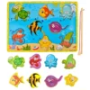 - SPECYFIKACJA – materiał: drewno powlekane papierem + rybki: MDF+ żelazo + wędka drewno + nylon + PVC + magnes; wymiary: 29,5 x 22 x 0,6 cm; długość wędki: 19 cm, waga: 389 g; waga w opakowaniu: 467 g.
