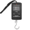 • SPECYFIKACJA – kolor: czarny; zasilanie: 2x bateria 1,5V AAA (w zestawie); jednostki ważenia: kg, lb, jin, oz; wymiary (szer/dł/grub): 4,8/8,5/1,7cm; dokładność pomiaru: 5g; skala pomiaru: do 40kg; długość haka: 5cm; waga produktu: 90g; waga produktu z opakowaniem: 94g.