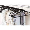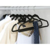 - WYSOKA JAKOŚĆ – wieszaki są wykonane z plastiku i w całości pokryte przyjemnym w dotyku welurem, dzięki czemu ubrania nie zsuwają się. Dodatkowo każdy wieszak posiada uchwyt na krawat, pasek czy apaszkę oraz ma wgłębienia na tasiemki.