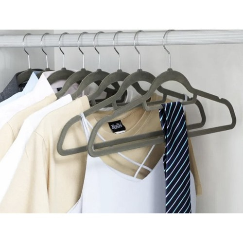 - WYSOKA JAKOŚĆ – wieszaki są wykonane z plastiku i w całości pokryte przyjemnym w dotyku welurem, dzięki czemu ubrania nie zsuwają się. Dodatkowo każdy wieszak posiada uchwyt na krawat, pasek czy apaszkę oraz ma wgłębienia na tasiemki.