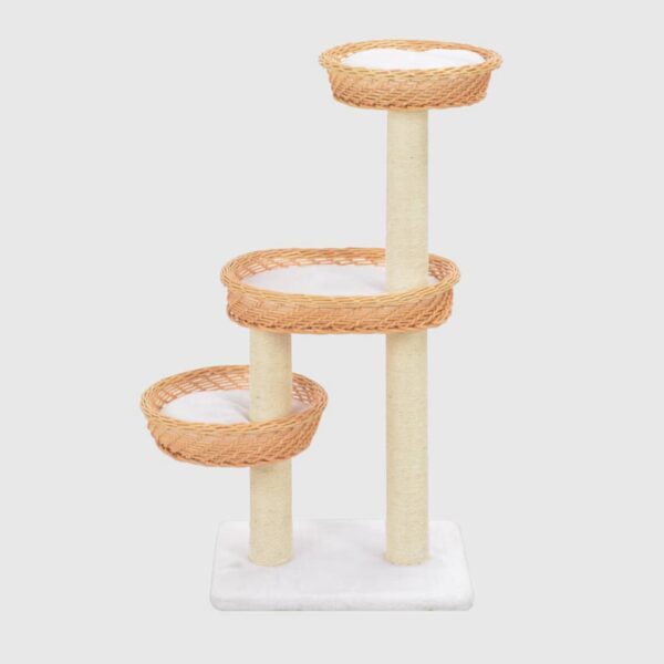 • Trzy przytulne koszyki: Te luksusowe wiklinowe apartamenty są idealne do królewskich drzemek i odpoczynku po intensywnych kocich harcach.