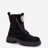 Botki damskie z eko zamszu to urocza propozycja łącząca wygodę z modnym detalem. Model sznurowany i zapinany na zamek zapewnia łatwe zakładanie i idealne dopasowanie do stopy, a ozdobne serce z kryształkami na języku dodaje subtelnego, kobiecego blasku, świetnie uzupełniając codzienne stylizacje.