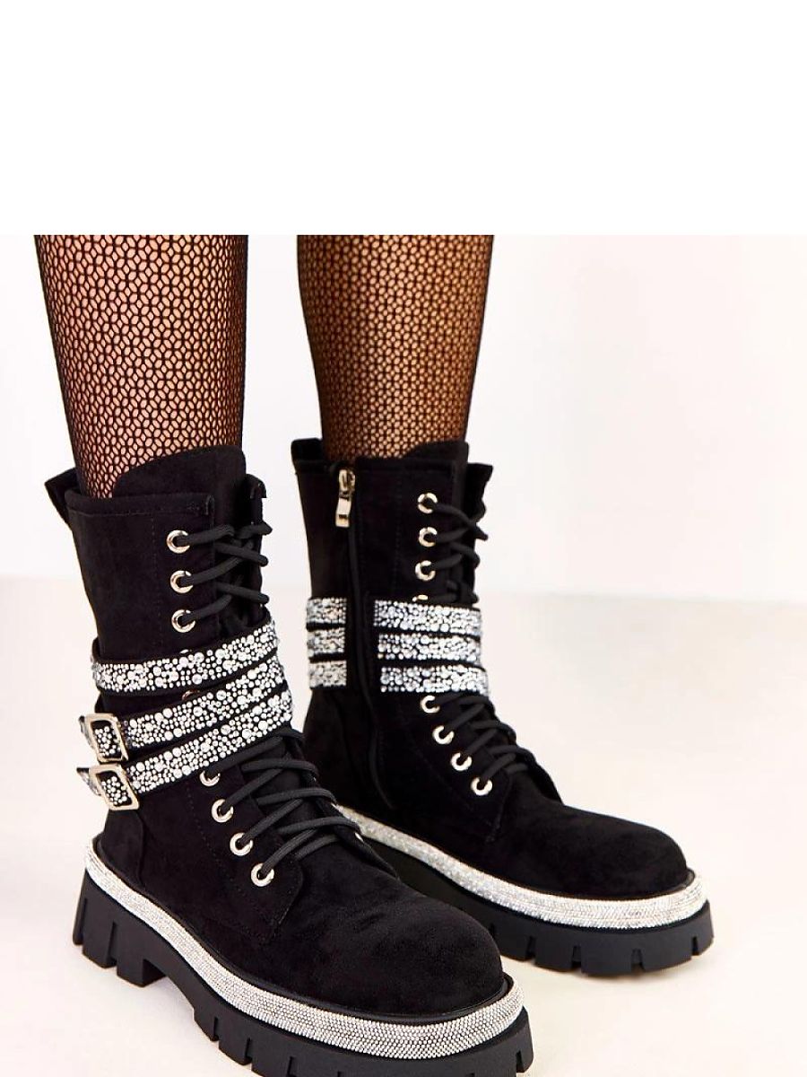Stylowe i wygodne workery damskie wykonane z zamszowej skóry ekologicznej, które łączą modny design z funkcjonalnością. Ozdobne paski z cyrkoniami oraz sznurowanie nadają butom charakteru i eleganckiego, błyszczącego akcentu, idealnego do codziennych i miejskich stylizacji. Model o wysokości za kostkę i cholewce 18,5 cm zapewnia wygodne dopasowanie do stopy. Okrągły nosek oraz platforma z obcasem gwarantują stabilność i komfort podczas chodzenia, a ocieplenie sprawia, że buty doskonale sprawdzą się w chłodniejsze dni. Zamek boczny ułatwia zakładanie, a wkładka z tworzywa sztucznego zapewnia trwałość i wygodę noszenia. To idealny wybór dla kobiet, które cenią modny wygląd, wygodę i efektowne detale, które wyróżniają każdą stylizację.
