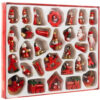 • SPECYFIKACJA – kolor: czerwony; materiał: drewno; ilość w zestawie: 30 szt; wysokość figurki: 2,5 – 4 cm; wymiary pudełka: 22,5 x 18,1 x 2 cm; waga: 95 g; waga w opakowaniu: 152 g.