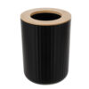 • KUBEK NA SZCZOTECZKI I KUBEK DO PŁUKANIA UST – w zestawie znajdują się dwa kubki – jeden przeznaczony do płukania ust podczas mycia zębów, a drugi do przechowywania szczoteczek do zębów. Kubek na szczoteczki jest wyposażony w bambusową nakładkę z dwoma dużymi otworami, które ułatwiają odseparowanie szczoteczek, zapobiegając ich stykaniu się. Oba kubki charakteryzują się eleganckim, czarnym wykończeniem z karbowaną powierzchnią, które nadają im nowoczesny wygląd.