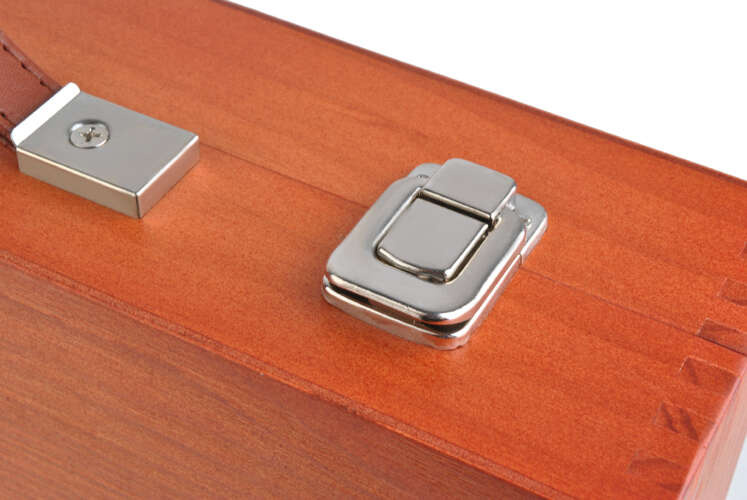 ?? PRAKTYCZNA WALIZKA – całość umieszczona jest w eleganckiej, rozkładanej, dwupoziomowej, drewnianej walizce, co podwyższa jej walory estetyczne, jak również wpływa na trwałość; walizka posiada wytrzymałą, wygodną, skórzaną rączkę, dzięki czemu transportowanie pełnej zawartości jest proste i komfortowe; metalowe, mocne klamry gwarantują, że podczas przenoszenia walizka będzie szczelnie zamknięta i nic się z niej nie wysypie ani niczego nie zgubimy; po wykończeniu pierwotnych przyborów, można z powodzeniem zapełnić walizkę nowymi, własnymi akcesoriami.