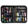 - ETUI – wszystko zamknięte zostało w czarnym etui wykonanym z wysokiej jakości materiałów organizerze. Dzięki niemu możesz trzymać przyrządy do szycia w jednym miejscu. Bez problemu schowasz je do torebki czy plecaka i zabierzesz ze sobą w podróż.